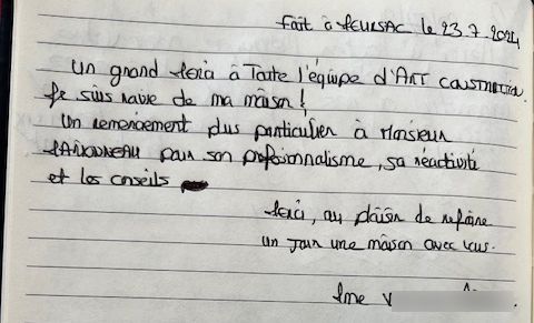 Un grand merci à toute l’équipe d’ART CONSTRUCTION.
