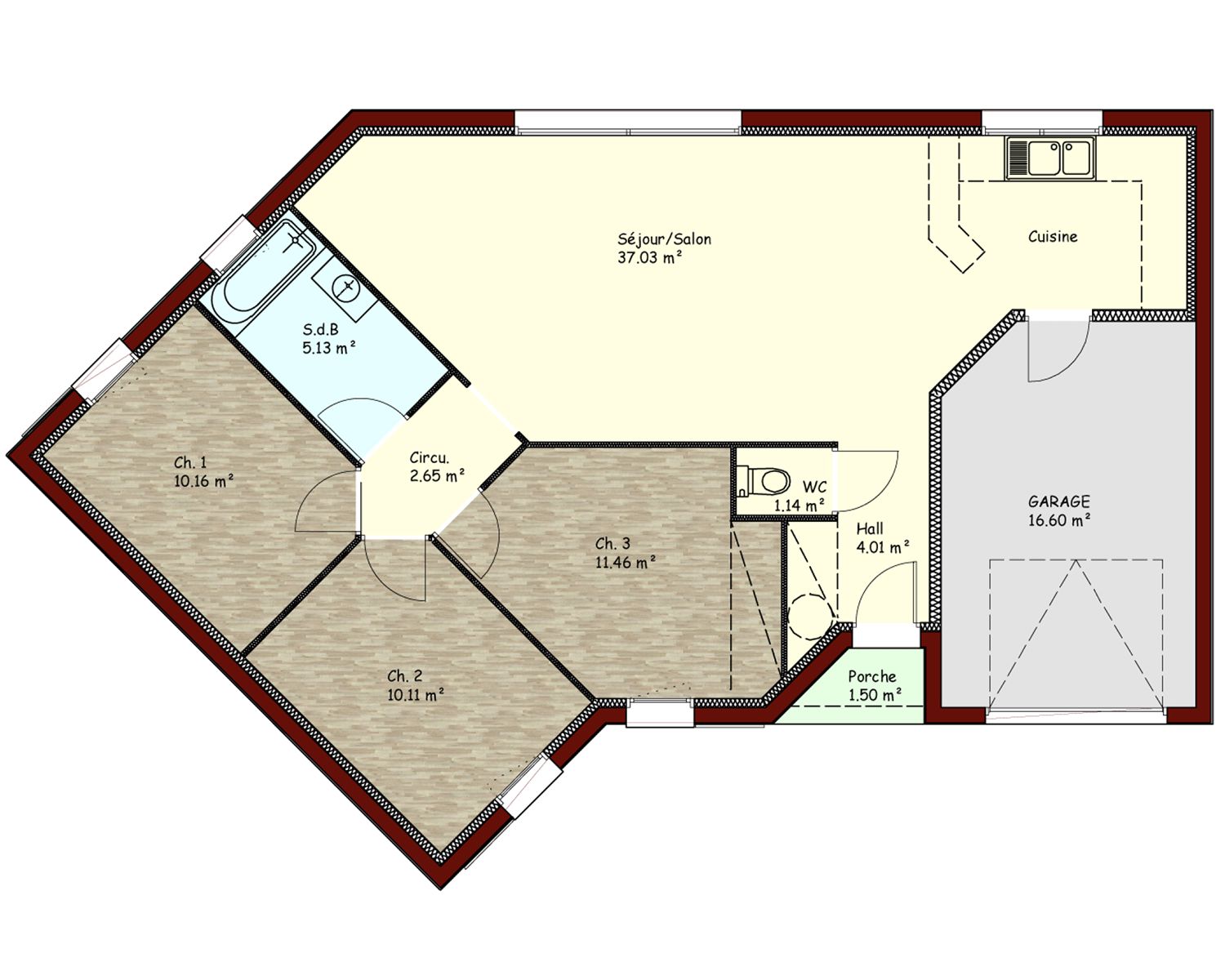 Maison individuelle de 82 m² 5 pièces avec 3 chambres