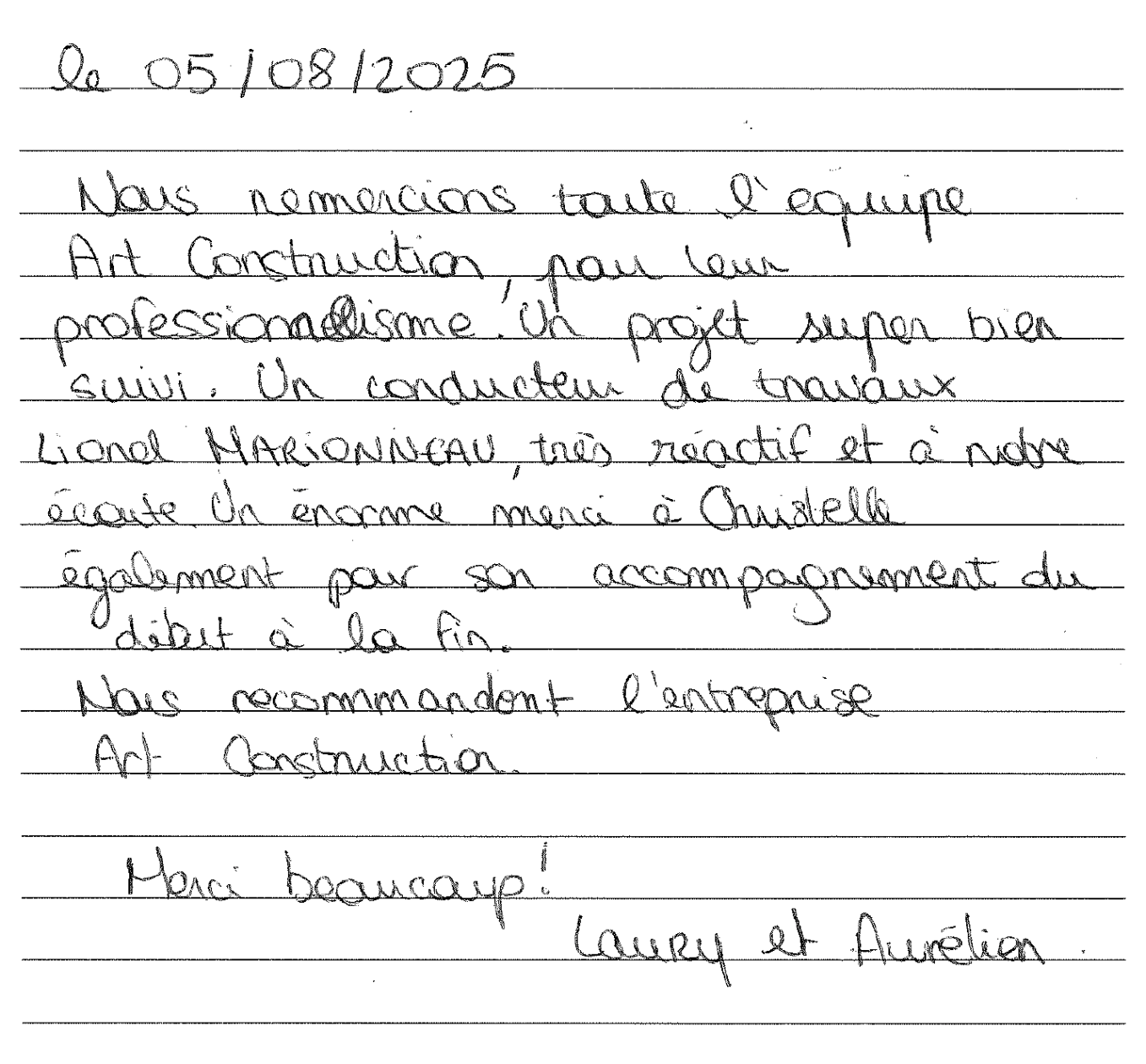 Nous remercions toute l’équipe Art Construction, pour leur professionnalisme.