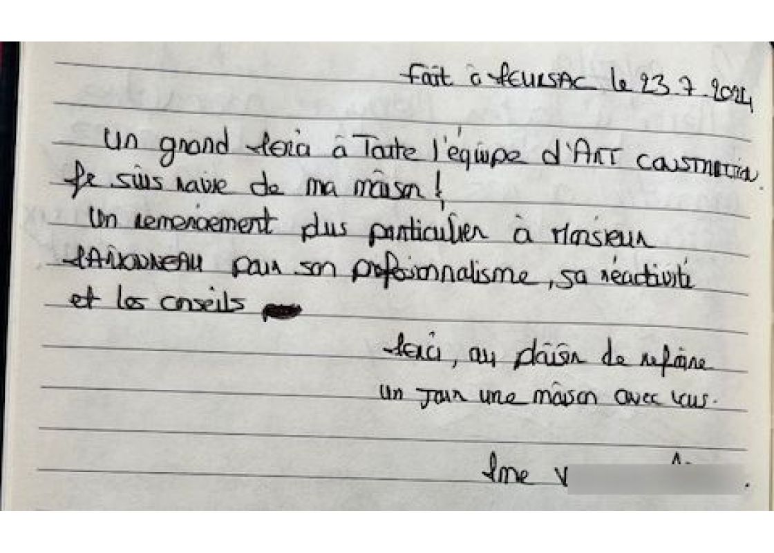 Un grand merci à toute l’équipe d’ART CONSTRUCTION.