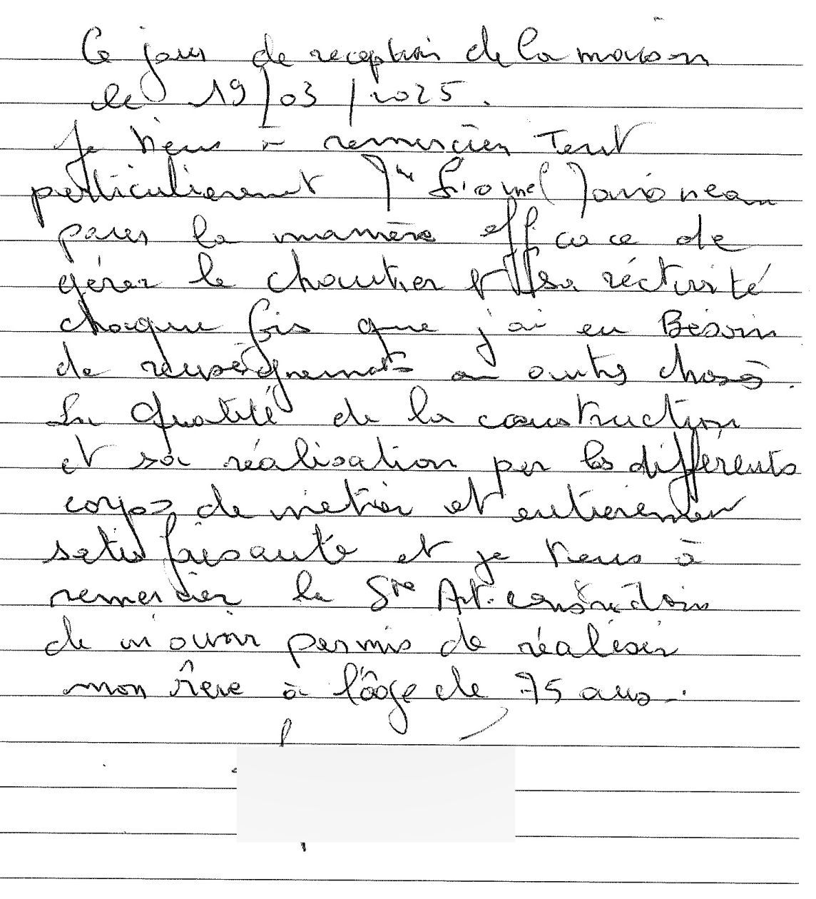 Jour de réception de la maison le 19/03/25.