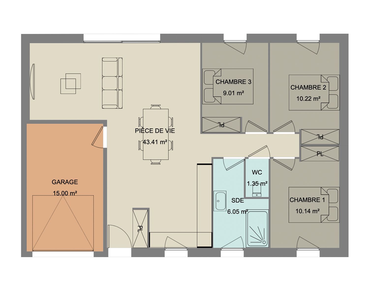 Ce modèle de maison indémodable et traditionnelle offre une surface habitable optimale tout en respectant votre budget.